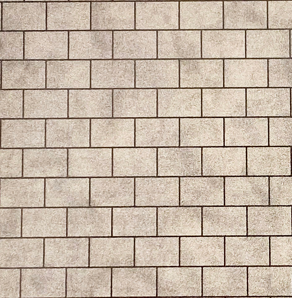 8 sheets of thick card printed paving, ideal for pavements and platform tops. Comes with kurb stones on each sheet.