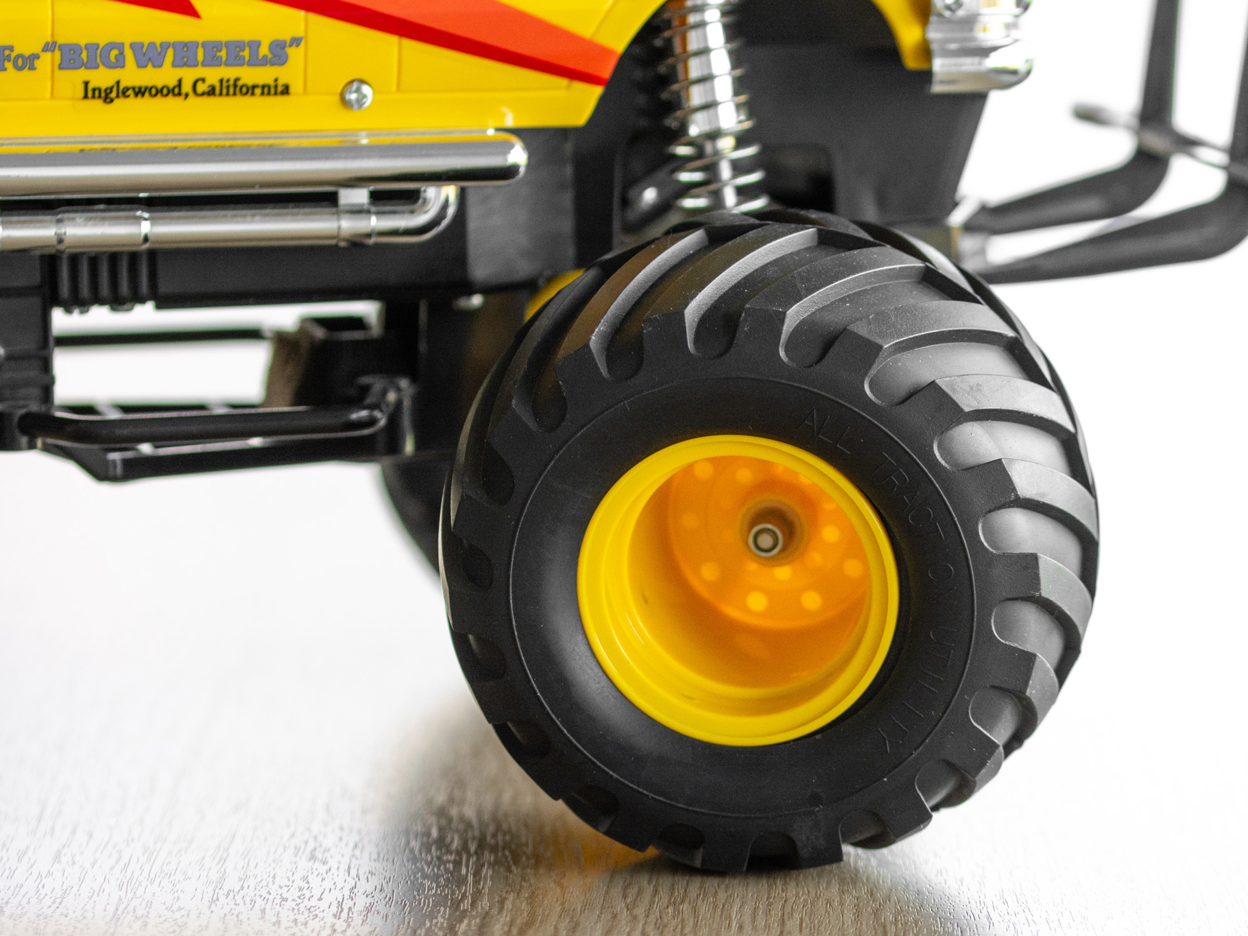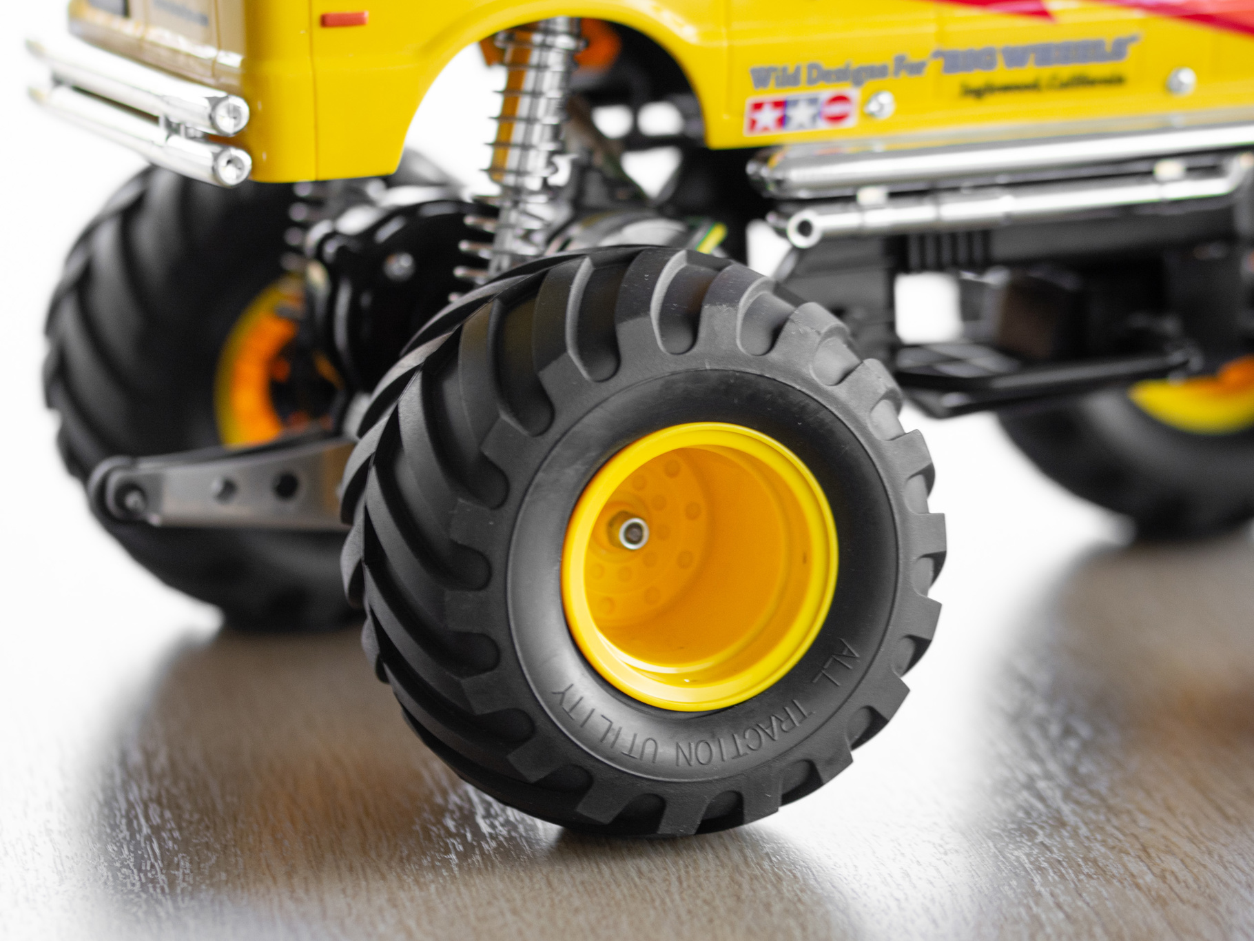 The durable and easy-to-assemble 2WD chassis employs a box type frame, and features front independent swingarms and a rear rolling rigid suspension. Big 115mm diameter tyres offer dynamic running on even the toughest of surfaces. A sealed gearbox protects the diff gear from dirt and sand during off-road driving. Rear mounted wheelie bar enables wild stunt driving.About The Model